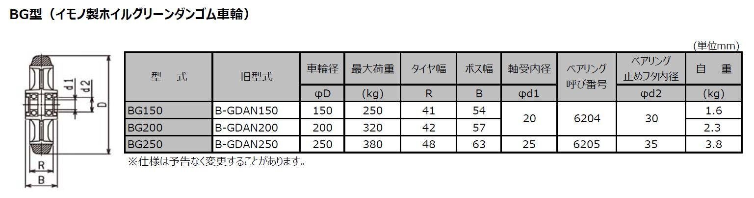 BG型(イモノ製ホイルグリーンダンゴム車輪) -