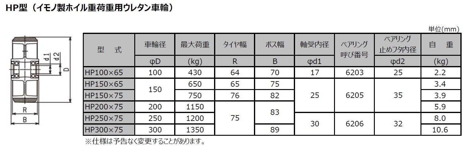 HP型(イモノ製ホイル重荷重用ウレタン車輪) -