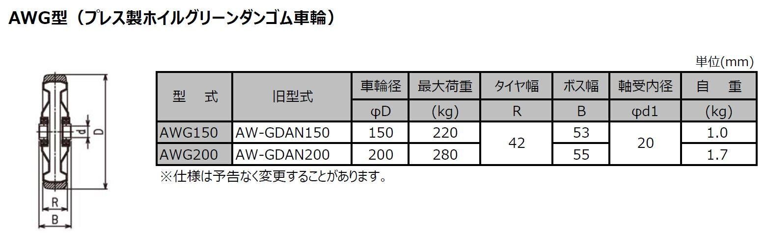 AWG型(プレス製ホイルグリーンダンゴム車輪) -
