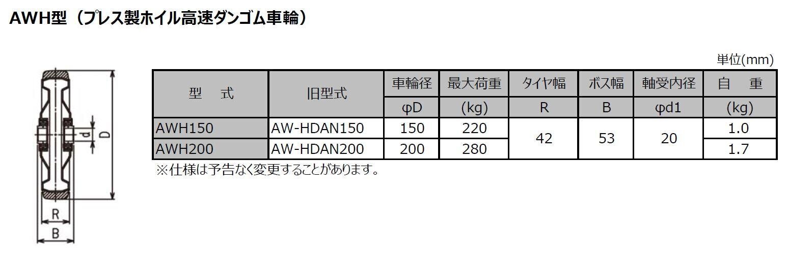 AWH型(プレス製ホイル高速ダンゴム車輪) -