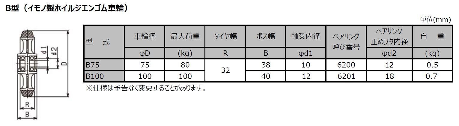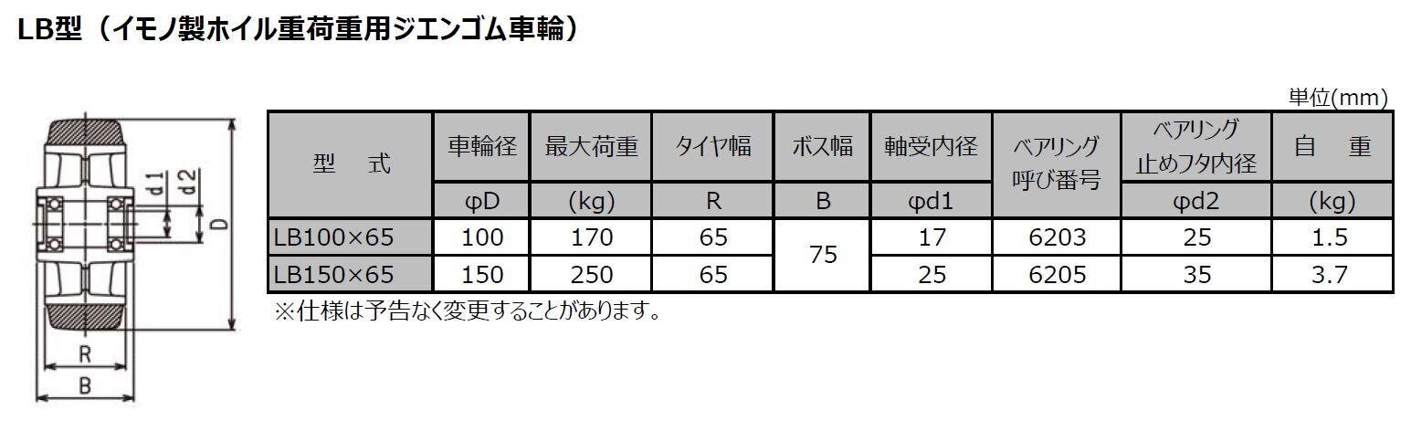 LB型(イモノ製ホイル重荷重用ジエンゴム車輪) -