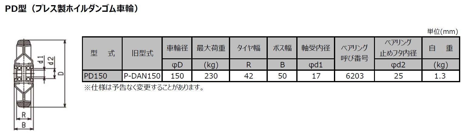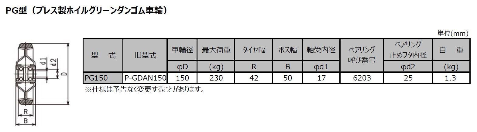 PG型(プレス製ホイルグリーンダンゴム車輪) -