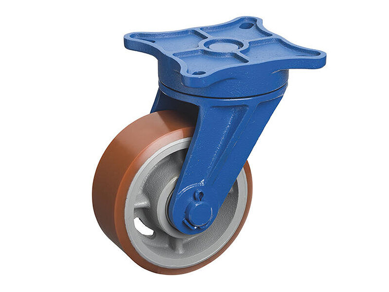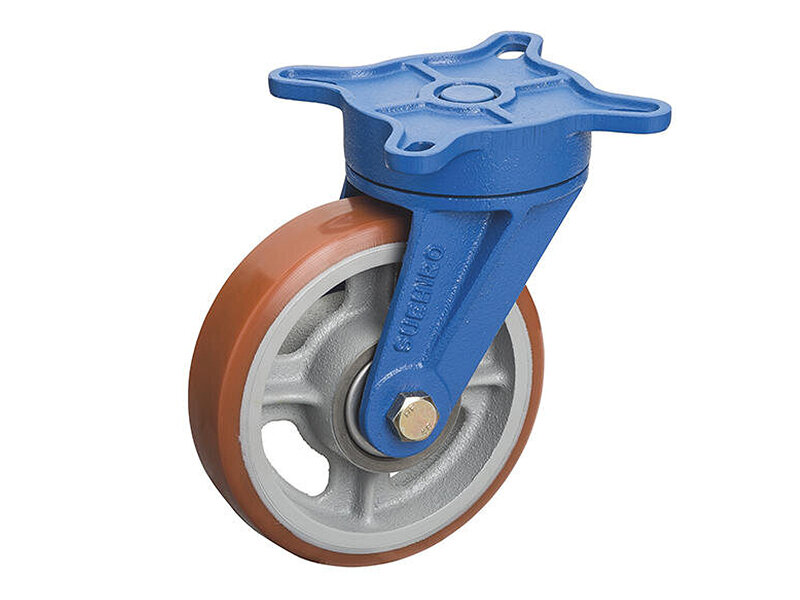 耐久性・耐蝕性に優れスムーズに走行する中重荷重用キャスターです。旋回部のガタ、ゆるみがほとんどなく、走行が静かで旋回もスムーズです。 荷重分布に優れるため衝撃に強く、水やゴミが入りにくい構造のためランニングコストにも貢献します。
